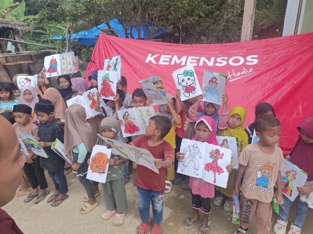 During the visit, the CMC Indonesia team facilitated psychosocial support activities for children, including group play, storytelling, drawing sessions, and light counseling. These activities were attended not only by displaced children but also by other children in the village, creating an inclusive, supportive, and cheerful environment despite the difficult circumstances.