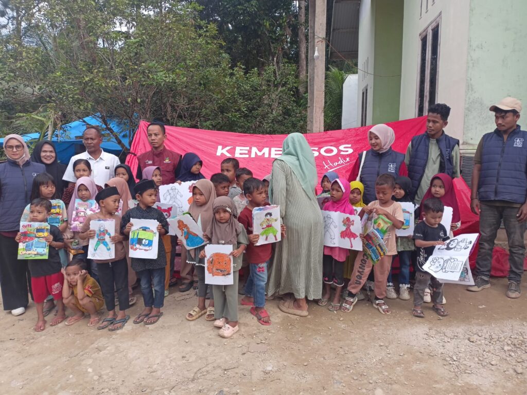 The flash floods that struck East Aceh on November 26, 2025 caused significant damage to residential areas, including Alue Canang Village in Birem Bayeun Sub-district. A total of 15 families lost their homes and were forced to seek temporary shelter at the Village Head’s house. This emergency situation has not only resulted in material losses but has also had a serious impact on the psychological well-being of the affected communities, especially children who have experienced trauma due to the disaster.